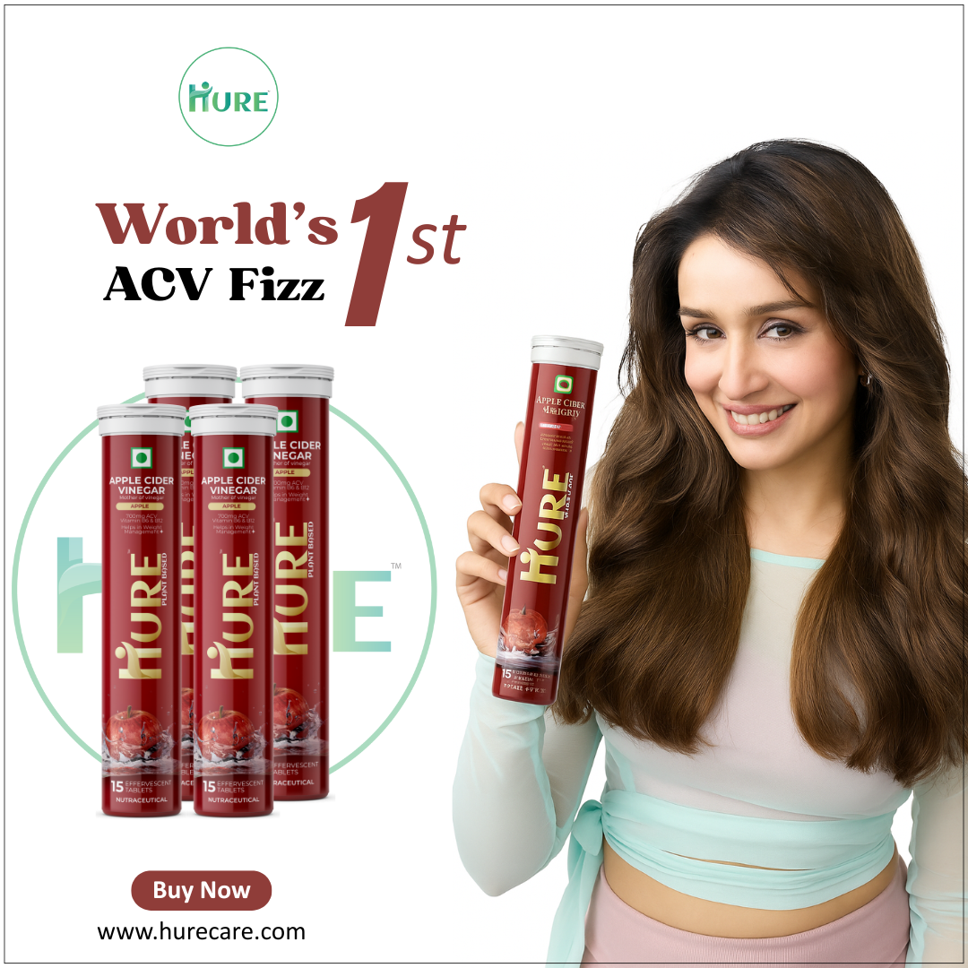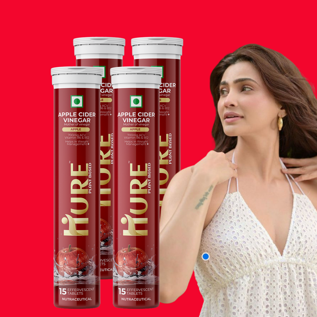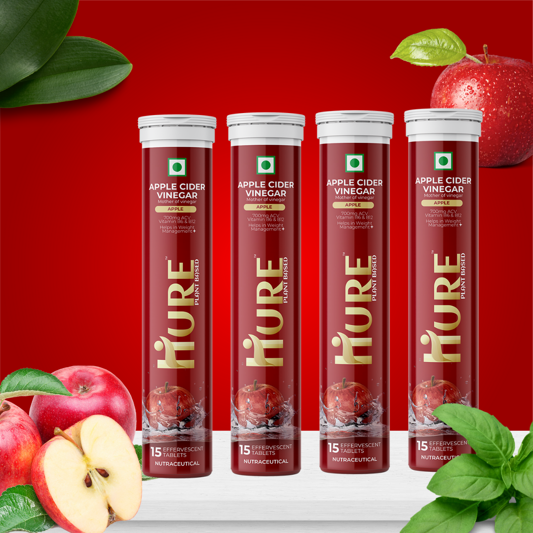 HURE Apple Cider Vinegar 15 Effervescent Tablets (Apple) | Pack of 4