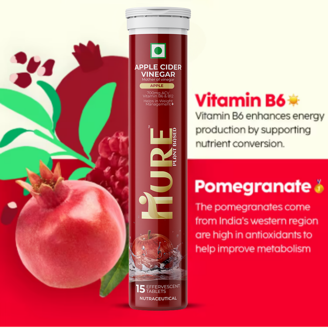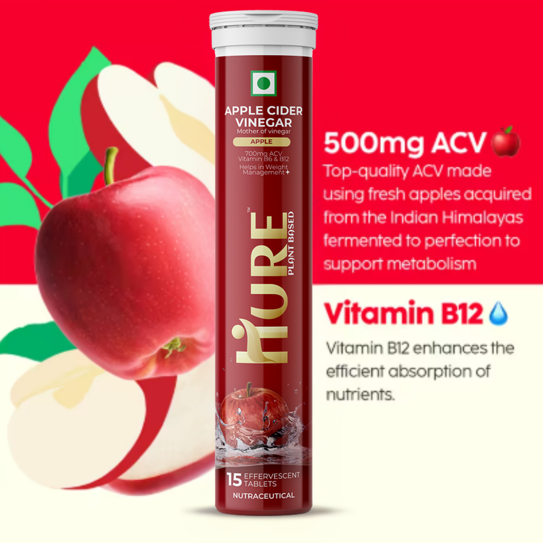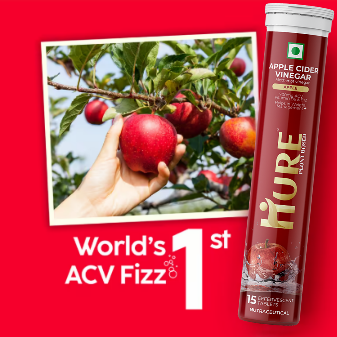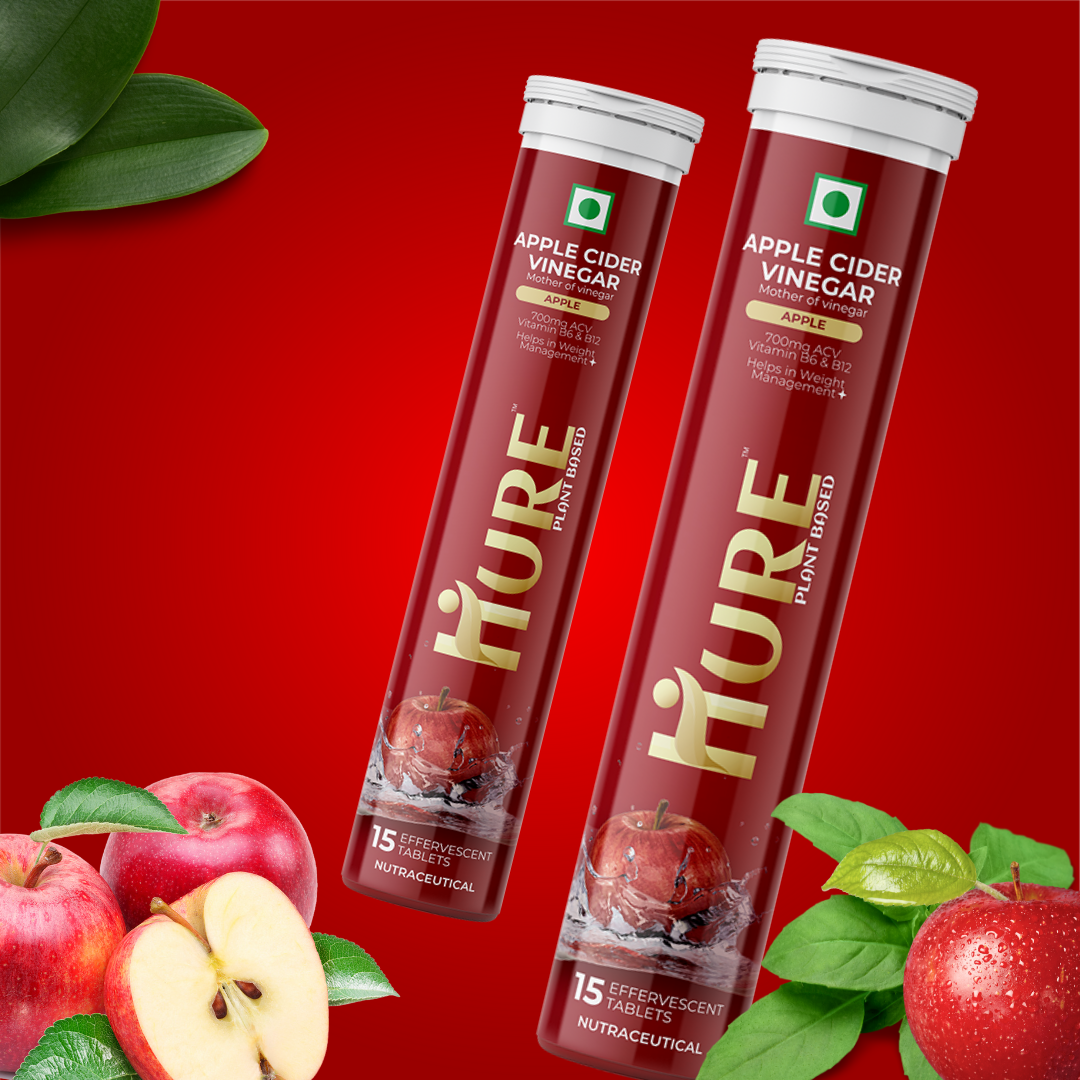 HURE Apple Cider Vinegar 15 Effervescent Tablets (Apple) | Pack of 4