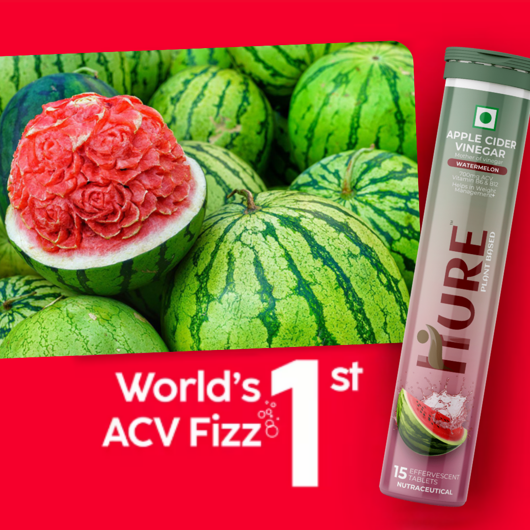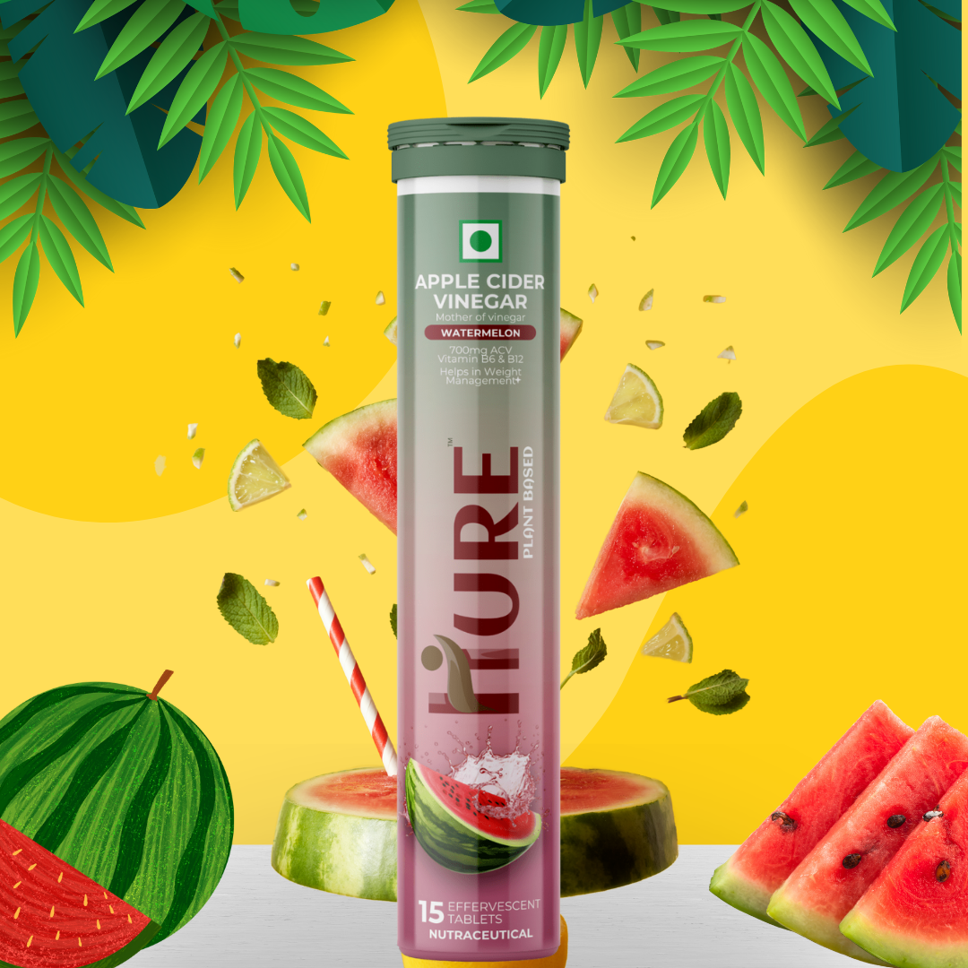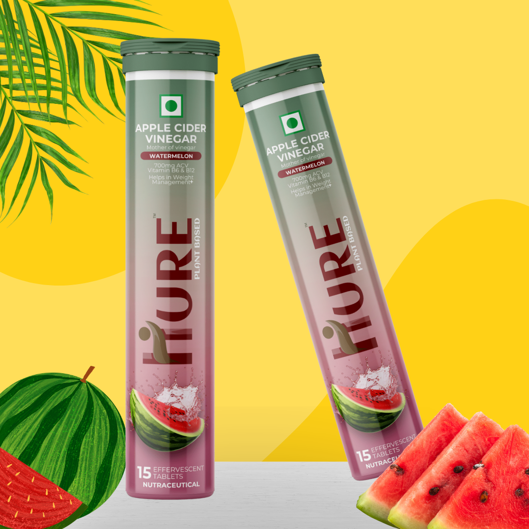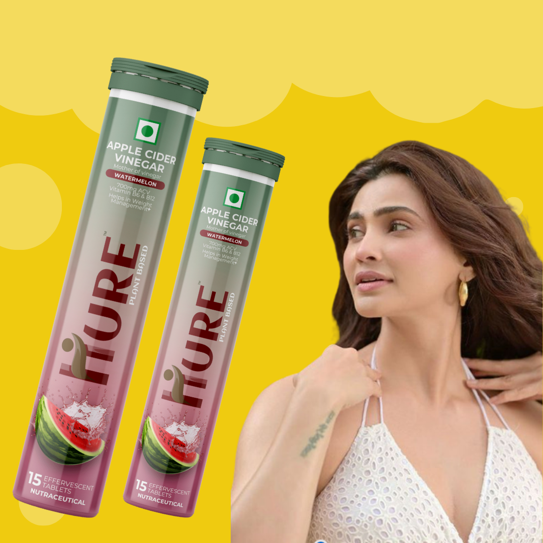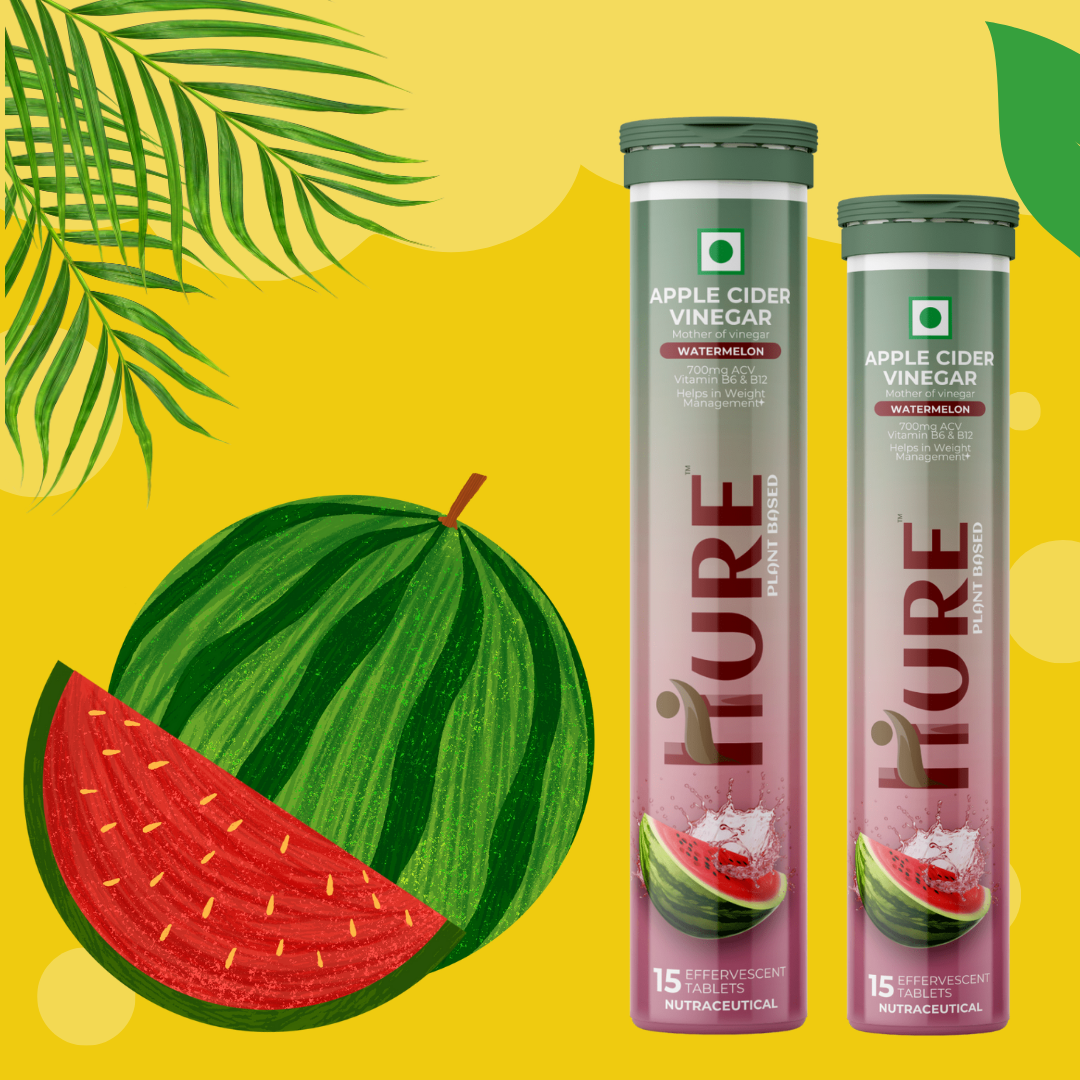 HURE Apple Cider Vinegar 15 Effervescent Tablets (Watermelon) | Pack of 2