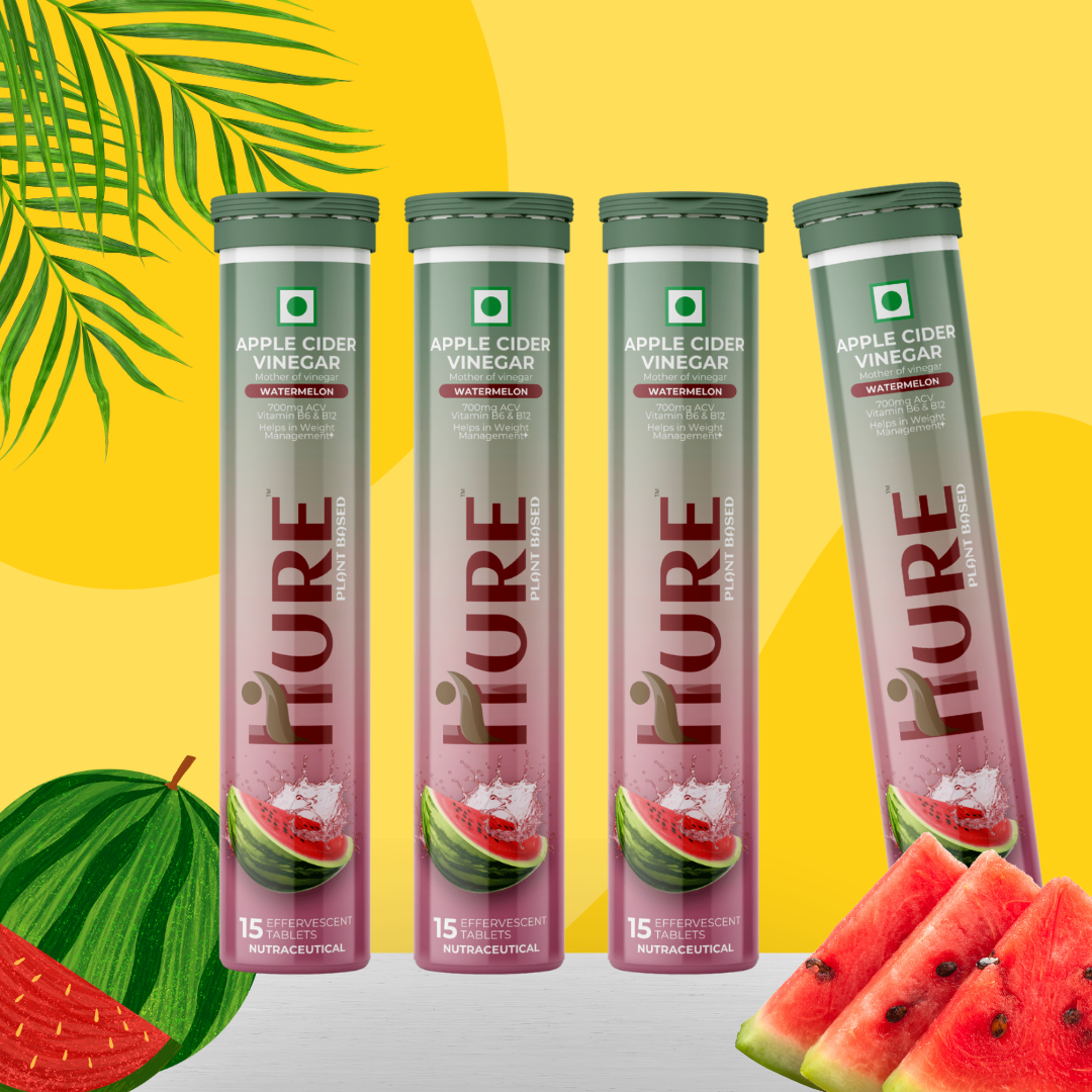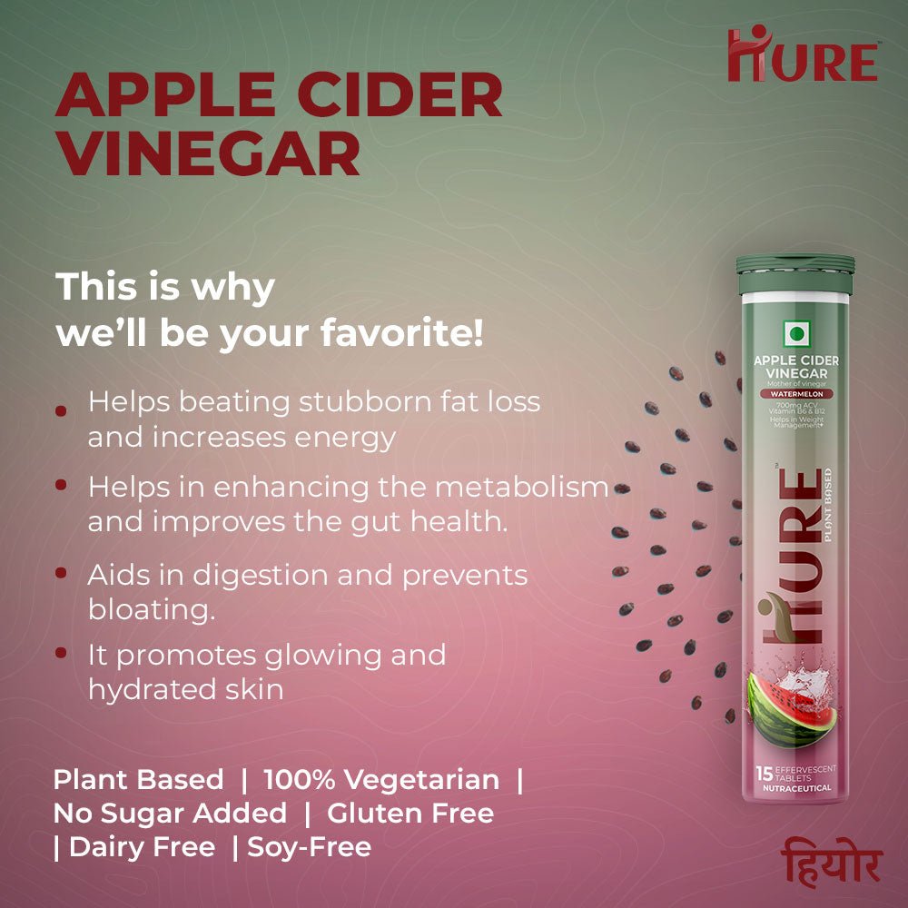 HURE Apple Cider Vinegar 15 Effervescent Tablets (Watermelon) | Pack of 4